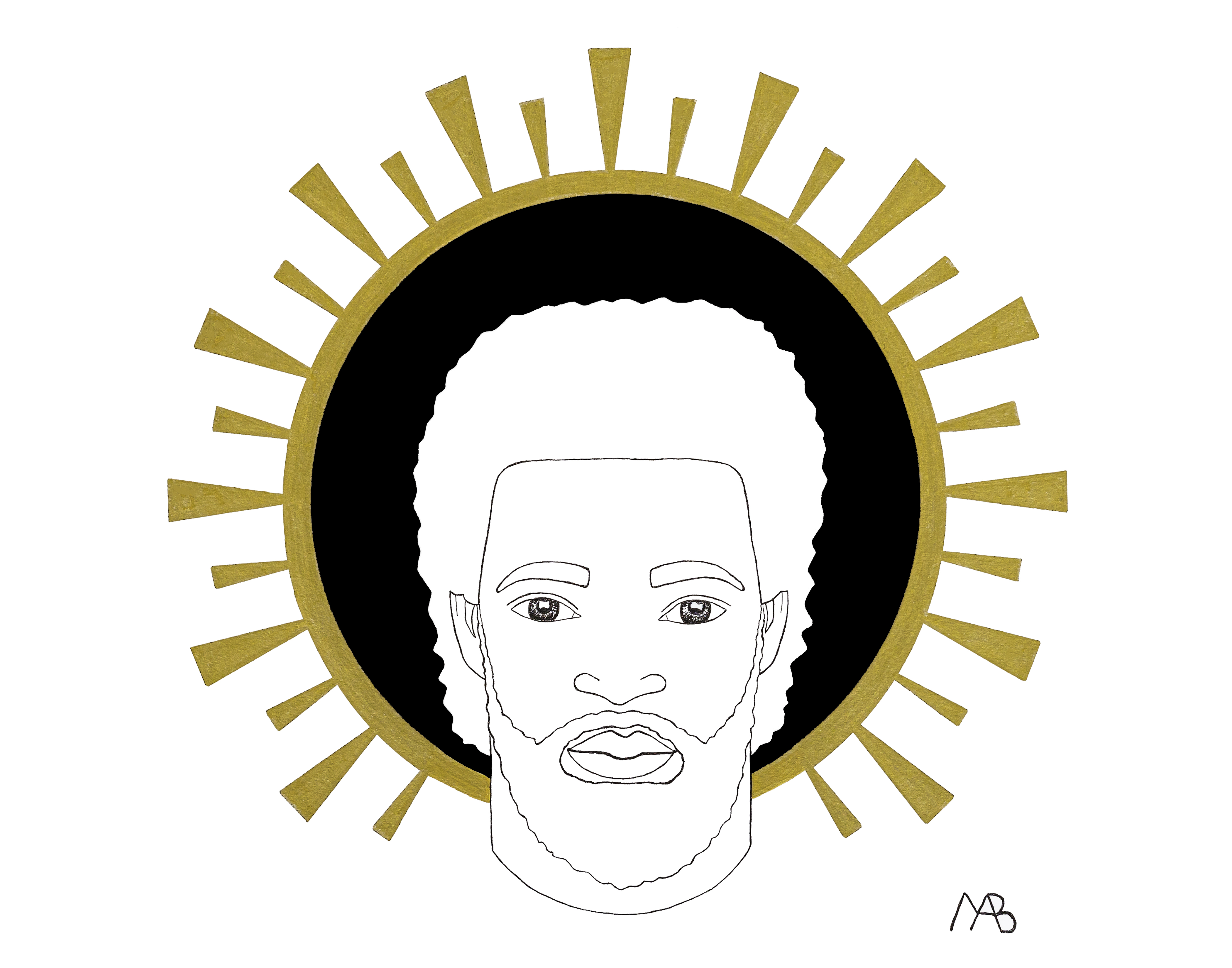 Jesus is portrayed utilizing an outline-stylized ink drawing technique. I have long searched for scripture describing Jesus’ physical appearance. I finally confirmed that Rev. 1:14-16 is the only scripture that provides this information. I let this scripture guide me in creating an image of Jesus after the resurrection. Thanks to my daughter’s research, I used a new technique to draw Jesus’ eyes so they brightly emanate his joyous everlasting love. Only by completely trusting and accepting Jesus’ love (and continuous prayer), did I have the courage and ability to accomplish this challenging mission. I am grateful for this opportunity to bring glory to the Lord with his gift of art.